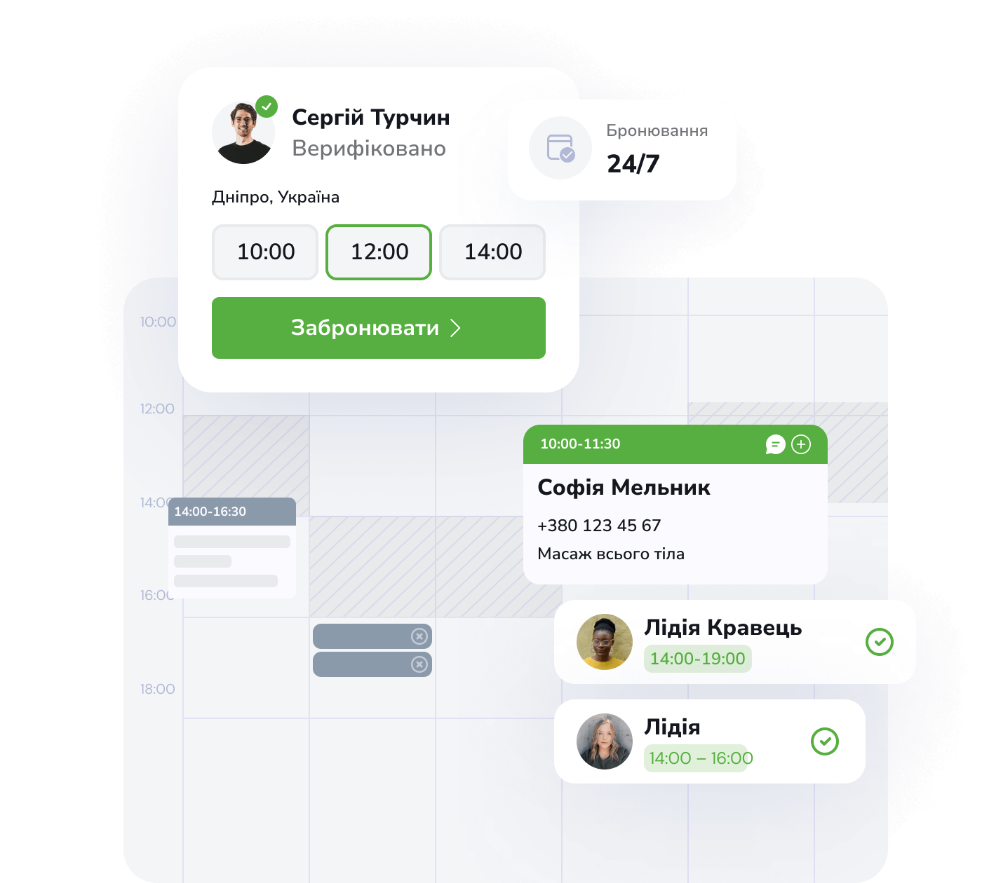 Так, кожна послуга може мати свою тривалість - від 15 хвилин до кількох годин. Система автоматично розраховує доступні слоти відповідно до тривалості послуги.