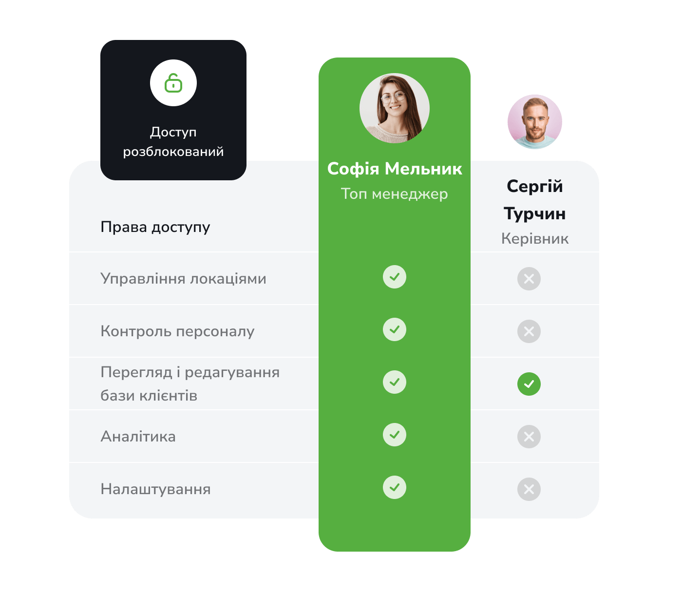 Так, ви можете в будь-який момент змінити роль співробітника або налаштувати індивідуальні права доступу. Зміни набувають чинності миттєво, забезпечуючи гнучке управління вашою командою.