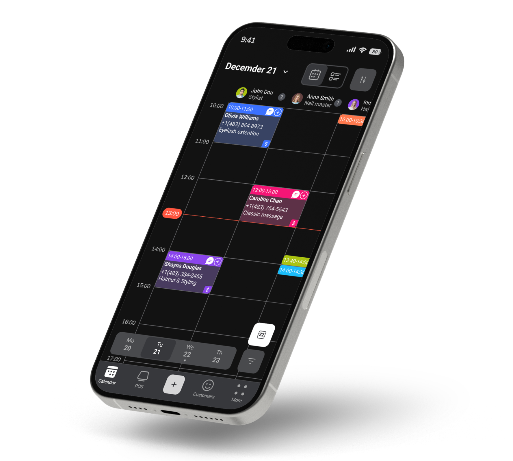 Додаток для запису клієнтів iOS від EasyWeek надає повний контроль над вашим бізнесом у будь-який час і в будь-якому місці. Ви можете переглядати бронювання в реальному часі, керувати розкладом, отримувати сповіщення про нові записи та відстежувати фінанси – все з вашого айфона.