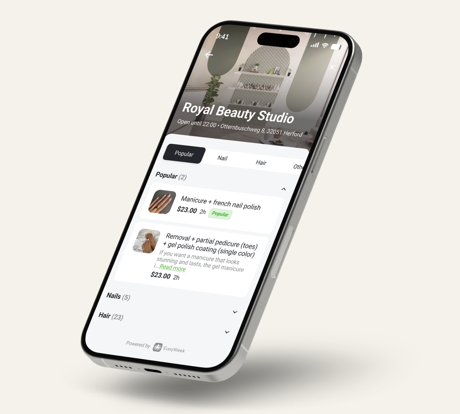 Мобільний додаток для запису EasyWeek на iOS дозволяє швидко знаходити потрібні послуги, переглядати доступні часи, бронювати онлайн, отримувати нагадування про записи та керувати своїми бронюваннями в будь-який час прямо з айфона.